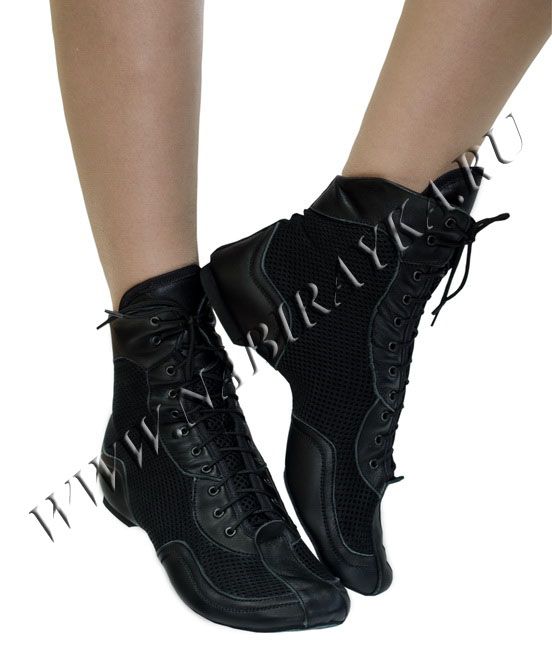 Джазовки высокие выполнены из натуральной кожи в комбинации с сеткой п/э, что обеспечивает хорошую воздухопроницаемость. Предназначены для занятий разными видами танцев. Подклад х/б.