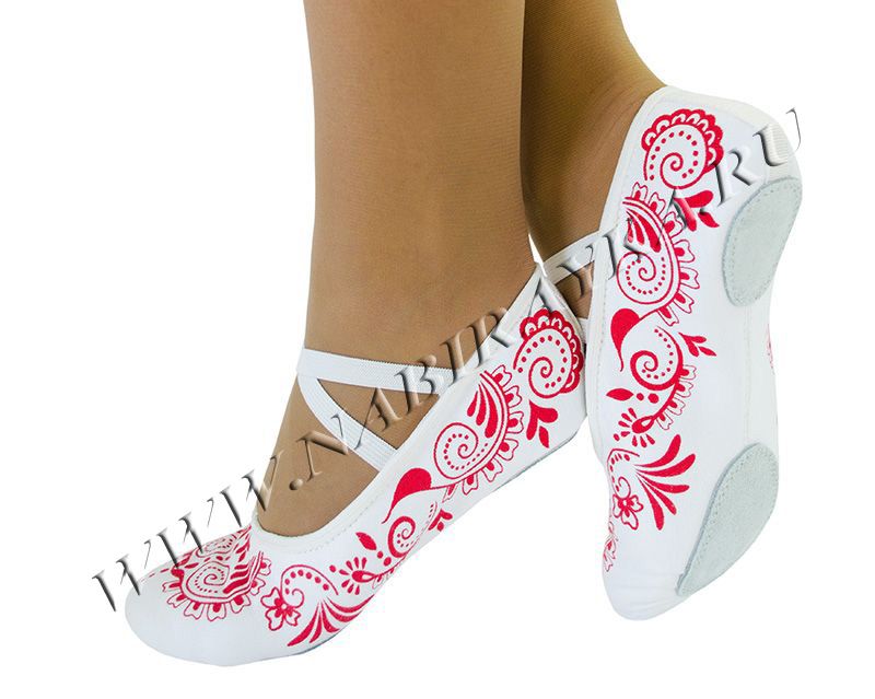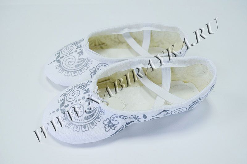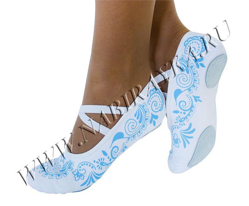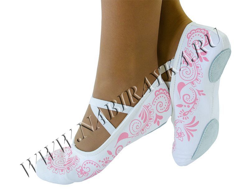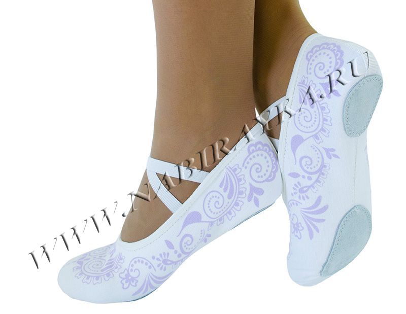 Мягкая балетная обувь, с перекрестными резинками на взъёме, предназначена для занятий гимнастикой, хореографией. Балетки выполнены из прочной кирзы (хлопок 100%). Подклад х/б. Вставки на подошве из натуральной и эластичной кожи.