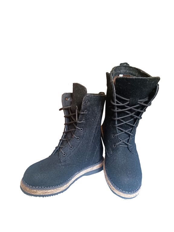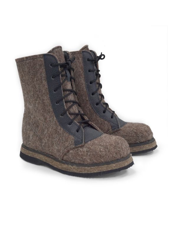 Берцы "ОГОНЬ" - новинка на рынке! Натуральный обувной войлок, натуральная кожа, мех под овчину, содержание шерсти 70%. Войлочная подошва полностью обеспечивает защиту от проникновения холода снизу, дополнительно проклеена морозостойкой микропористой резиной. Берцы очень удобные, в любой мороз вам будет комфортно и очень тепло. Поставляются в коричневом цвете и черном. Дополнительно черные могут быть с замком сбоку.