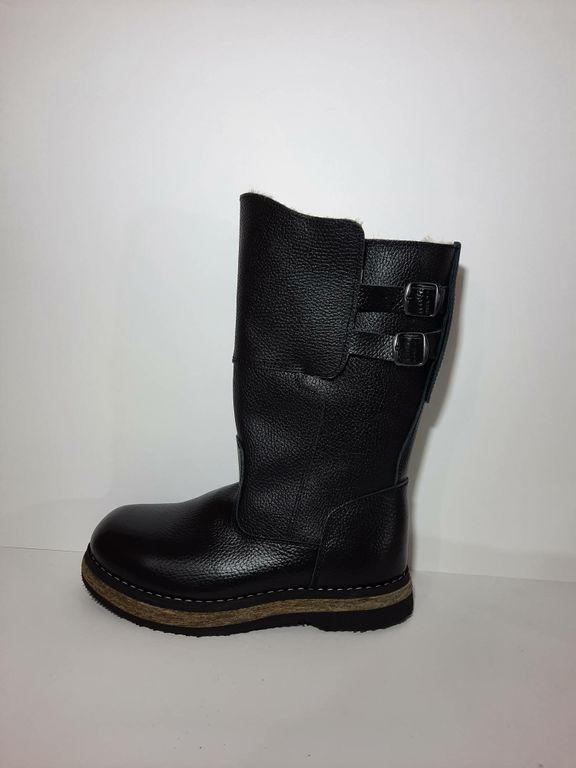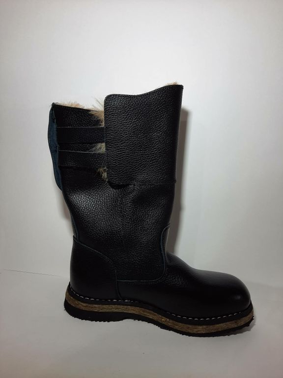 Сапоги монгольские. Выполнены из натуральной кожи - хром, внутри натуральная овчина, войлочная подошва, низ из морозостойкой микропористой резины. Регулируемое голенище по объему.