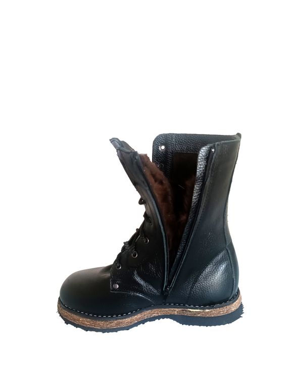 берцы кожаные мужские зимние с боковой молнией. Натуральная кожа, внутри натуральный мех, подошва натуральный войлок, снизу резина морозостойкая. Шнуровка спереди и молния замок внутри. Берцы "ОГОНЬ" - новинка на рынке! Эти ботинки зимние изготовлены из натуральной кожи с натуральным мехом. Такая комбинация материалов обеспечивает надежную защиту от холода и влаги.